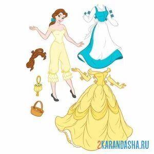 Принцесса бель бумажная кукла с одеждой