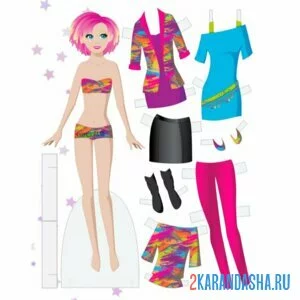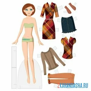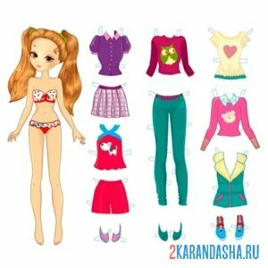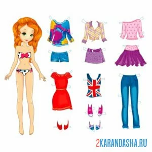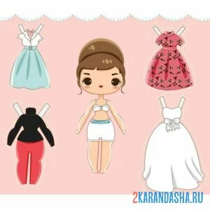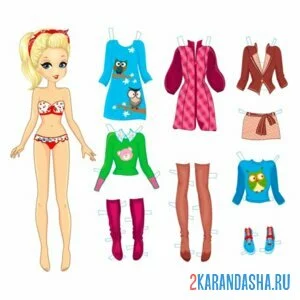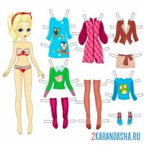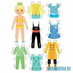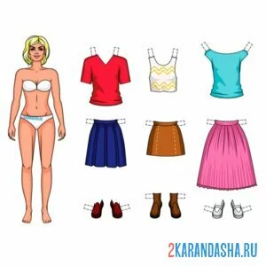 Цветная бумажная кукла с разной одеждой для вырезания
