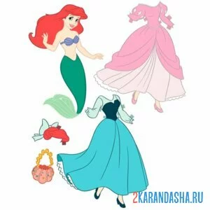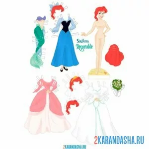 Ариэль бумажная кукла с одеждой для вырезания