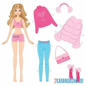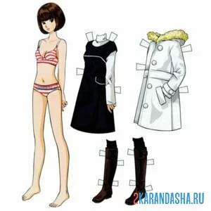 Цветная бумажная кукла гардероб