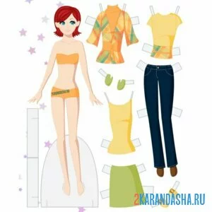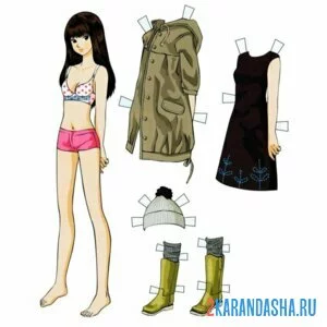 Бумажная кукла цвет для вырезания
