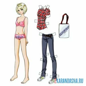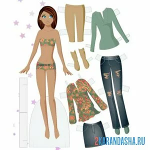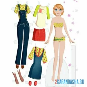 Бумажный пупсик с одеждой для вырезания