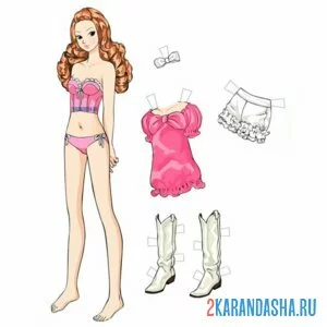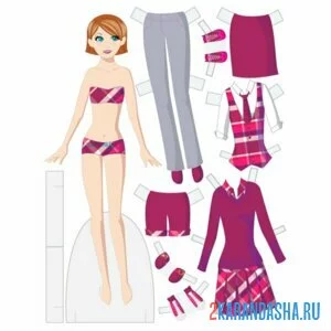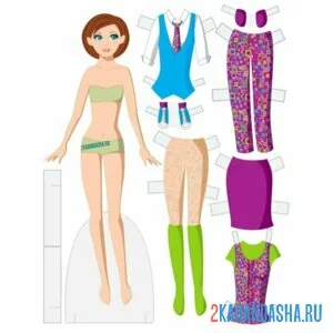 Цветная бумажная кукла в трусиках с одеждой