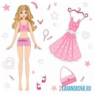 Цветная бумажная Барби с одеждой