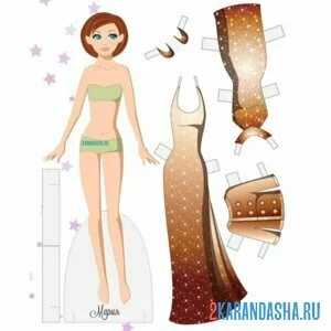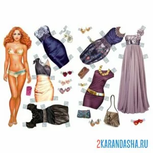 Цветная бумажная кукла вечернее платье