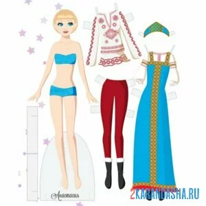 Цветная бумажная кукла для вырезания