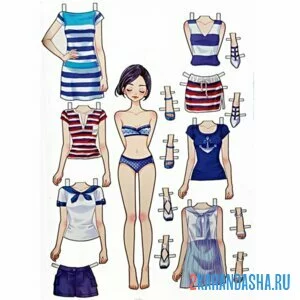 Бумажная кукла и летняя цветная одежда для вырезания