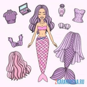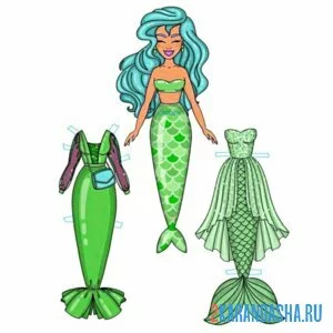 Русалка цветная бумажная кукла