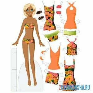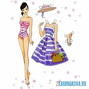 Цветная бумажная кукла в купальнике для вырезания