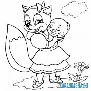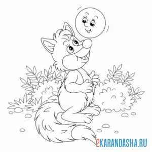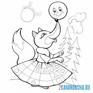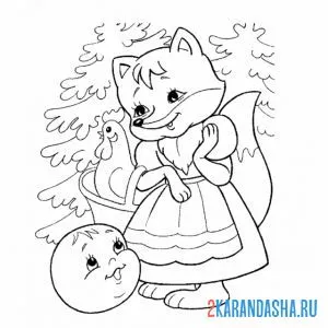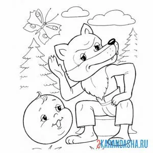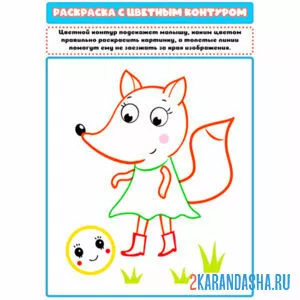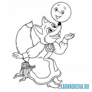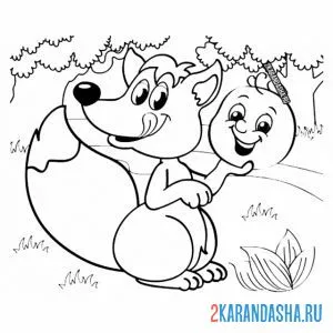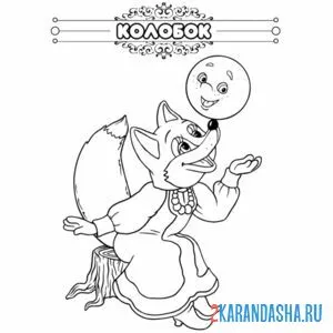 С цветным контуром лиса и колобок