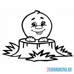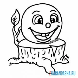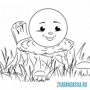 Колобок сидит на пеньке