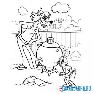 Волк и Заяц готовят чай в самоваре