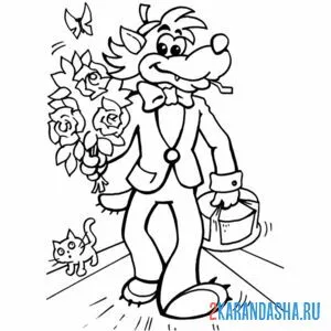 Волк с цветами и тортом