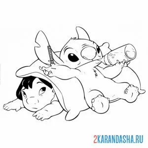 Раскраски онлайн стич и лило