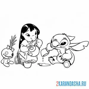 Стич и Лило пьют чай