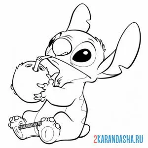 Стич пьет кокосовое молоко