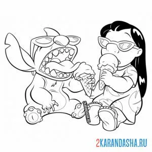 Стич и Лило едят мороженое