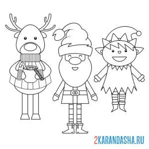 Новогодний олень, дед мороз и гномик