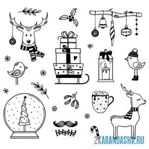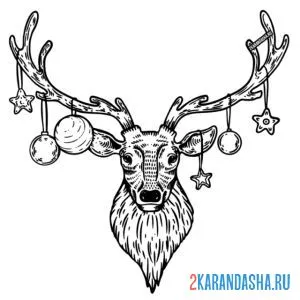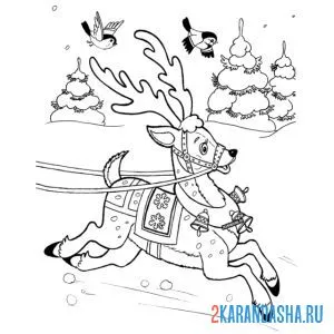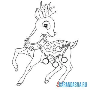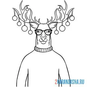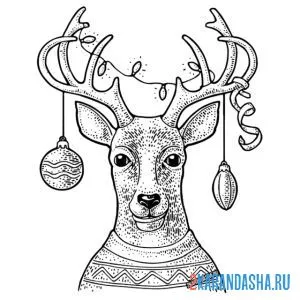 Раскраски онлайн новогодний олень