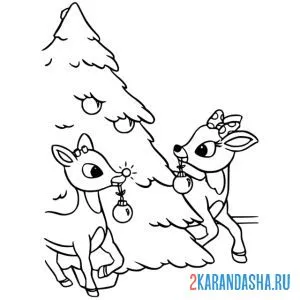 Два новогодний оленя и елка