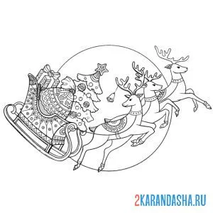 Дед Мороз на санях с оленями