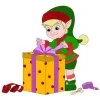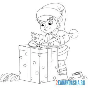 Эльф упаковывает подарок