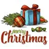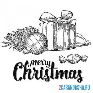 Еловая ветка, шар и подарок