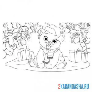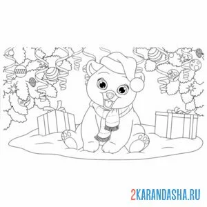 Красивый медведь в новогодней шапке