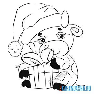 Бычок с новогодним подарком
