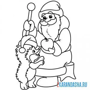 Дедушка Мороз поздравляет ежика