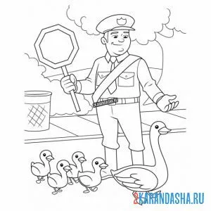 Полицейский переводит уток через дорогу