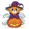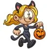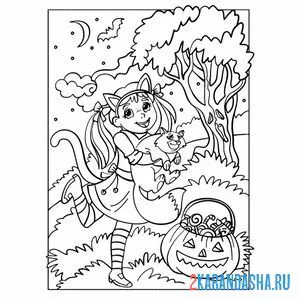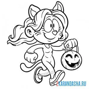 Девочка с тыквой в костюме кошечки
