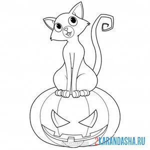 Черный кот и тыква Хэллоуин