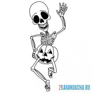 Скелет и тыква Хэллоуин