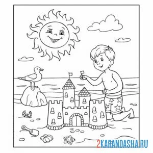 Замок из песка и солнышко. Лето