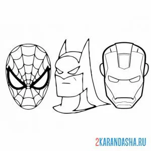 Три маски бэтмена, человека-паука и железного человека