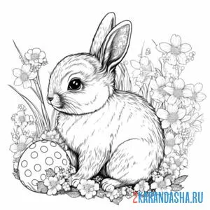 Зайчик раскрашивает яйцо