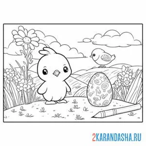 Цыпленок птенчик и пасхальные яички